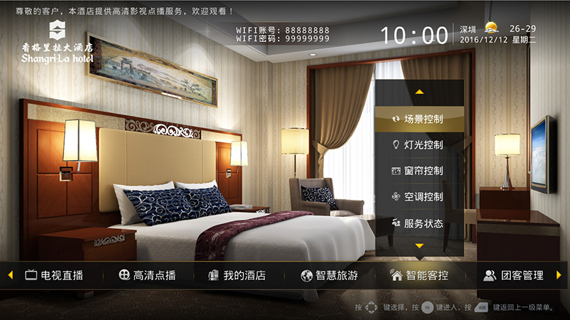 ? 智慧酒店視訊互動系統:用于網絡、頭端設備和”輝視通”智能互動控制器的交互,從而保證交互視頻業務的提供,管理和分發。